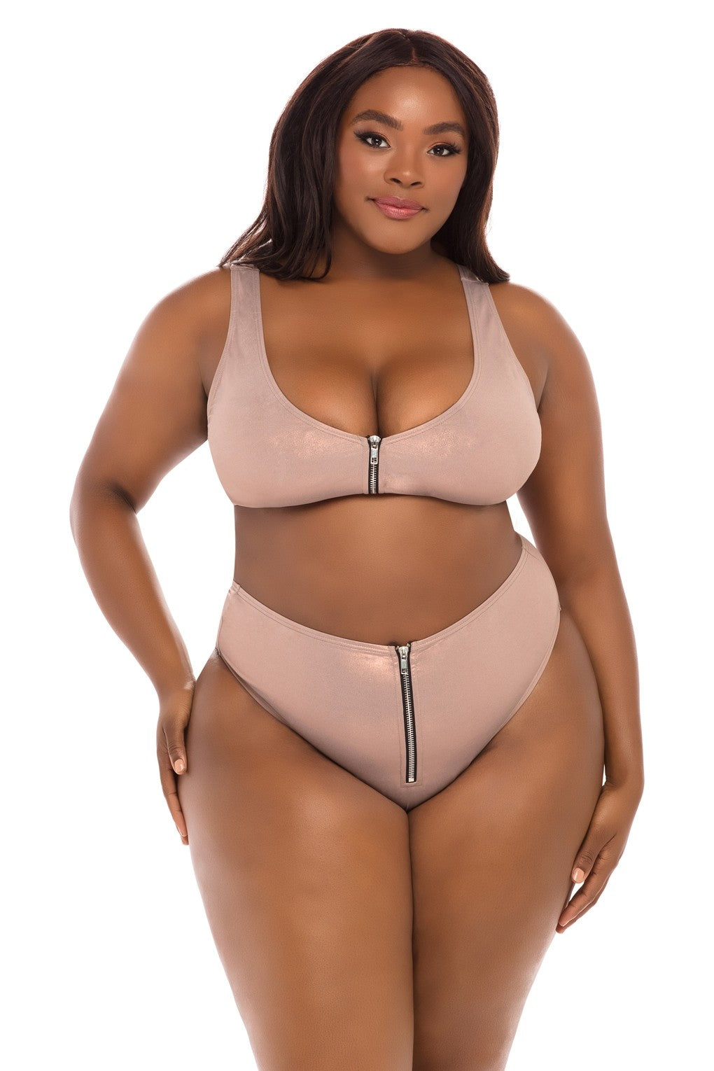 SPORT BIKINI TOP AND MATCHING HIGH WAIST CHEEKY BOTTOM WITH FUNCTIONAL ZIPPERS