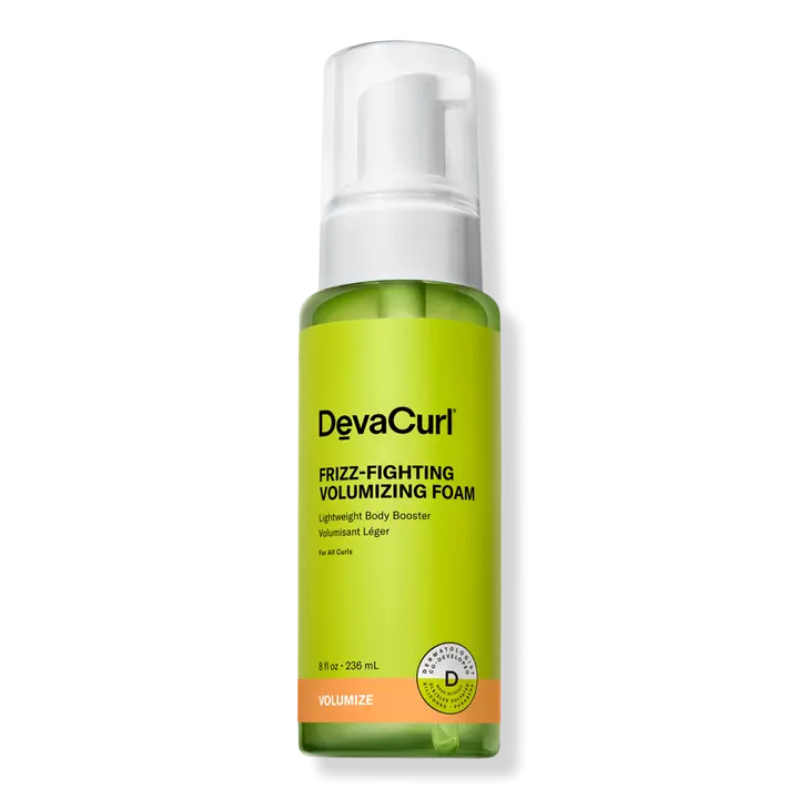 Give your curls a body boost. DevaCurl's FRIZZ-FIGHTING VOLUMIZING FOAM Lightweight Body Booster with its Airy Volume Complex provides curls with fullness, touchable definition and frizz control, plus humidity resistance for up to 48 hours.